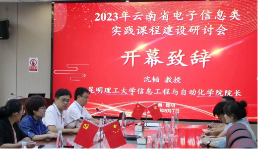 承办的2023年云南省电子信息类实践课程建设研讨会成功举办。来自省内12所高校的电子信息类相关专业一线教师参加研讨会。学院院长沈韬作开幕致辞,副院长李恒主持会议。