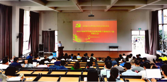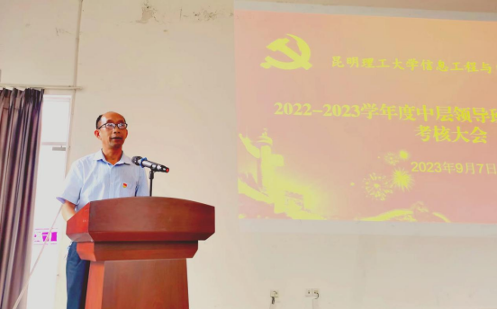 在信自100召开2022—2023学年度中层领导班子和处级领导干部考核大会,会议由学院党委书记齐毅主持,学校党委组织部党建督导李云雯同志出席。学院党政领导班子成员、科级干部、各系主任、教工支部书记、学科带头人和教职工代表近140人参加大会。