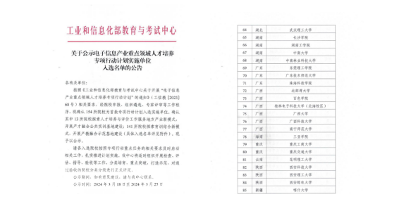 附《关于公示电子信息产业重点领域人才培养专项行动计划实施单位入选名单的公告》:
