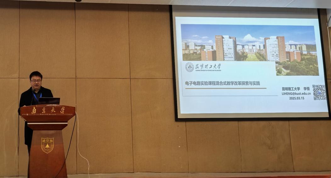 李恒老师受邀出席,并作题为《电子电路实验课程混合式教学改革探索与实践》的专题报告,分享了我校电工电子实验教学团队在电子电路实验课程混合式教学改革中的经验。