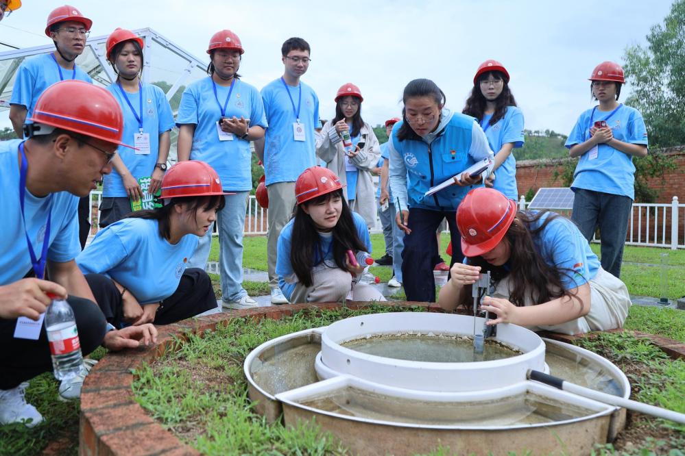 实践团成员们对这套自动水面蒸发监测系统表现出浓厚的兴趣,这套系统是该学院王剑平教授科研团队研发设计的,将蒸发量测算从传统人工检测的0.1毫米误差提升至如今自动监测系统的千分之一毫米误差。在王剑平教授的现场讲解下,成员们了解了水文信息采集与信息学科的紧密联系,例如监测系统如何运用传感器技术实时获取水文数据,以及如何通过物联网和数据处理算法保障数据的准确性和及时性。