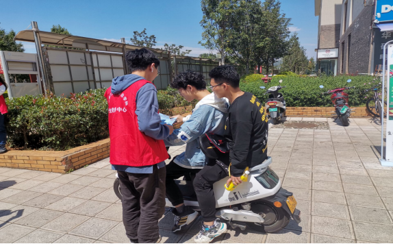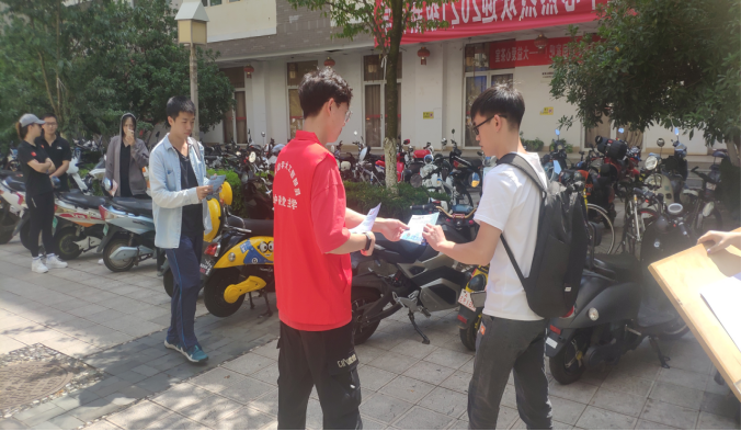 活动中,支部书记王丽娟与全体支部党员同志一起,穿上标有“信自先锋”字样的志愿者马甲,带上支部成员自己制作的校园交通安全宣传单,在学校的怡园步行街,结合党史学习教育,向同学们发放安全宣传单,阻止劝解存在校园安全隐患的校园骑行和步行的同学,使同学们了解交通法律知识,增强交通安全意识,提高自我保护的能力。活动开展刚好在下课时间,很多同学在校内骑车不带头盔、超载、超速行驶等行为存在严重的安全隐患,支部党员同志及时拦下这些同学并进行安全教育,大部分同学都能够认识到自己的错误并承诺认真改正。