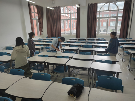 在三位书记上完党课之后进行了“我为群众办实事”的主题党日活动,首先由支部书记给支部党员介绍活动的流程以及支部党员在活动过程中需要做的事,随后支部书记根据支部党员总数合理分配小组并指定一个组长,然后由组长带领各小组党员寻找教室打扫卫生。党员同志们在活动过程中清除课桌抽屉里边的垃圾,擦黑板,清倒垃圾桶里边的垃圾,并把课桌和凳子归位整齐。
