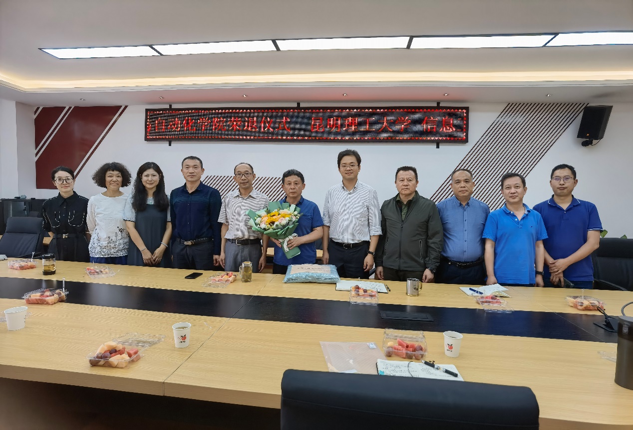 在信自楼237会议室为本年度退休的杨嘉林、黄青松、樊军、许江淳、高浪、傅铁威、胡守成七位老教师举办荣退仪式。