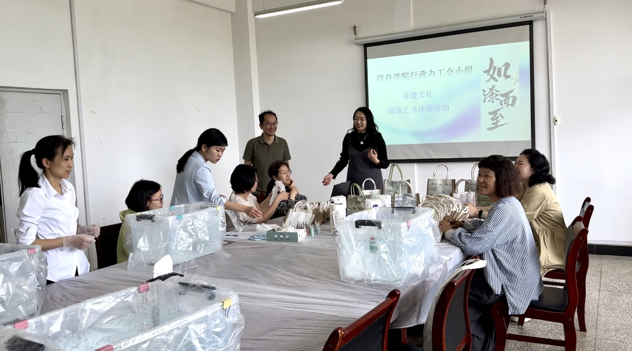 行政办工会小组着眼于满足教职工的精神文化生活新期待,于6月6日在信自228成功举办非遗漂漆体验活动,让教职工们感受中国传统大漆飘逸天成的美。