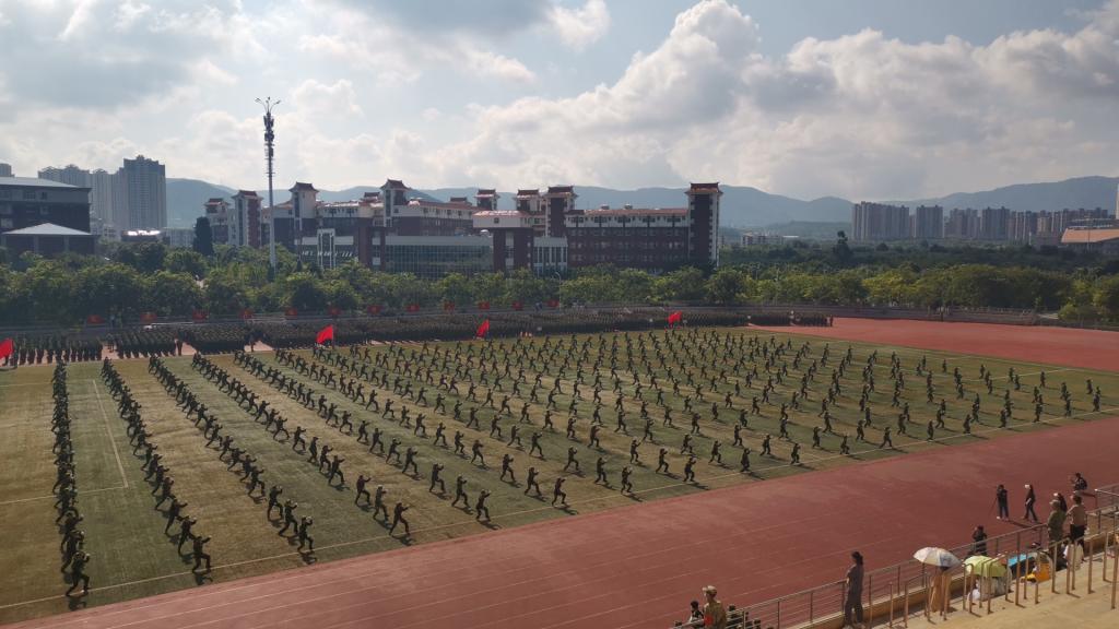 2022年7月14日上午8:30,暗网禁区 在恒园体育场隆重召开2021级军训成果展示暨军训工作总结表彰大会,暗网禁区 全体2021级参训学生集体接受学校检验汇报军训成果。600余名信自学子口号嘹亮、身姿挺拔、动作整齐、气势磅礴迎接了检阅。