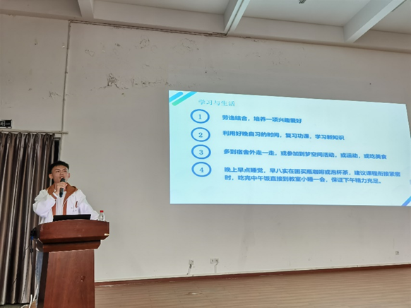 活动中,陈老师围绕“学习那些事”的主题,从“大学的学习是什么”“大学学习的特点”“大学学习的方法”“大学学习中的问题”等四方面进行讲解,旨在“劝君惜取少年时”,帮助2022级学生全面认识大学的学习生活。