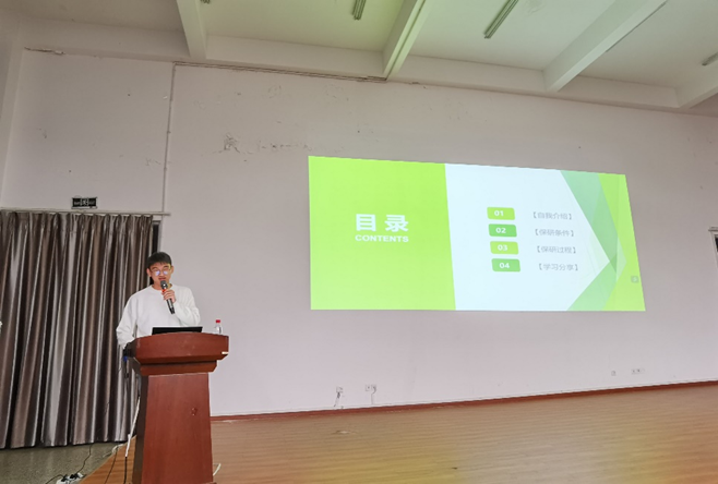 陈泽良和娄世猛则围绕“免试攻读硕士研究生”,与低年级同学交流了保研之路的坎坷与艰辛的心理历程,建议同学们在学习中做好劳逸结合,注重培养学习能力,才能在大学的学习中更好地“乘风破浪”。