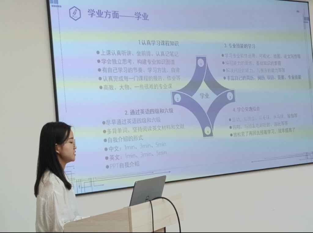 活动中,重点针对2023届毕业班资助联络员开展助学贷款网上毕业确认具体操作流程传达,并通过宣传视频以及PPT详细介绍了还款、还息的流程及各种注意事项。针对非毕业班资助联络员开展“诚信和金融知识教育主题活动”,主要围绕助学贷款等相关内容。除此之外还介绍了一些简单的金融和防诈骗知识,增加了同学们的金融知识和防诈骗能力。此外,邀请优秀勤工助学学生代表智科191班朱雪蓉来分享保研经历以及大学期间的学习方法。