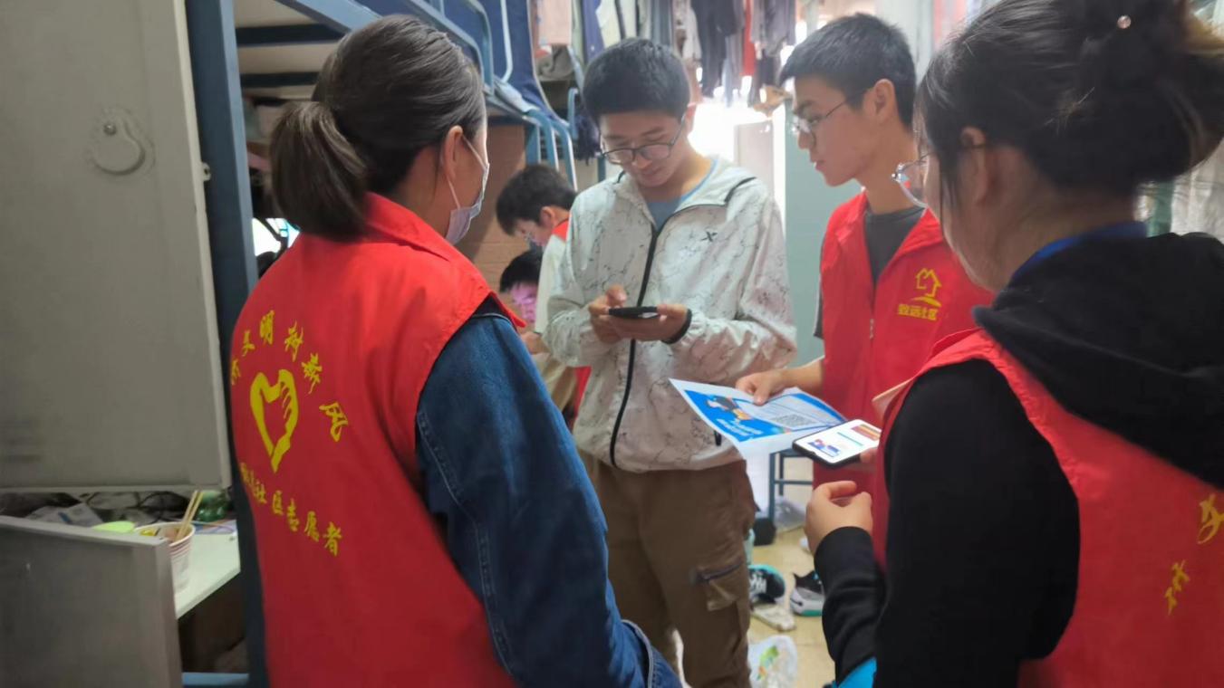 2023年10月19日,为进一步加强在校本科学生防范网络电信诈骗意识,减少网络电信诈骗危害,暗网禁区 、人工智能产业学院联合吴家营派出所、致远社区开展了反诈宣传进社区活动活动。本次活动中,派出所民警、社区工作人员、学院辅导员、班级学生干部走进学生宿舍宣传反诈知识并指导学生关注“金钟罩”公众号及下载使用国家反诈中心APP。