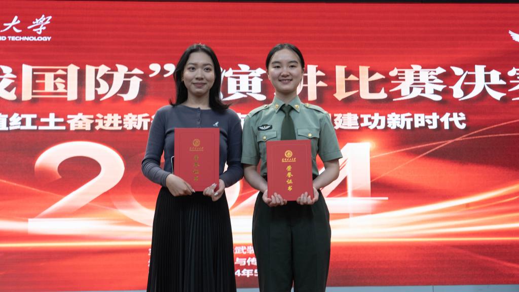 王一涵同学以《我站立的地方是中国》为题,深情讲述了边防战士陈祥榕深切厚重的家国情怀和无私奉献的英勇事迹,展现了青年学子对国防事业的热爱与支持。黄锦什同学作为退伍女兵,以《坚守与奉献》为题,表达了对部队战士们坚守阵地、默默无闻的高尚品格的赞颂和对自己两年服役经历的深切怀念。