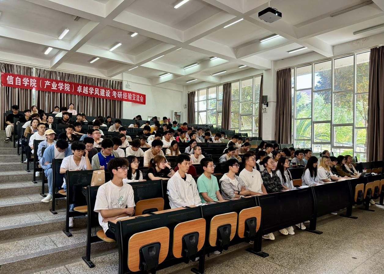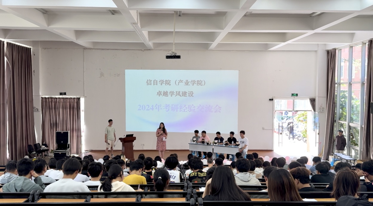 (产业学院)学风建设,增强同学们考研的信心和决心,为同学们复习备考提供有效指导,学院于6月13日下午2:30在信自100报告厅举办考研经验交流分享会,本次交流会由专职辅导员朱颖文主持,学院2021级、2022级、2023级通信工程、自动化、计算机科学与技术等专业学生积极参加。
