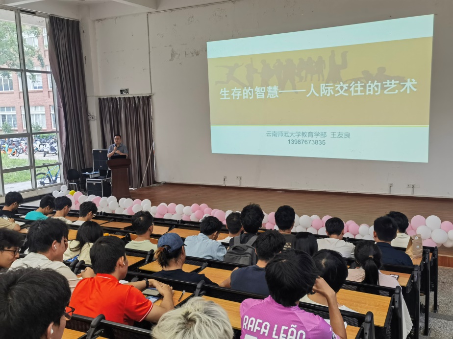本次系列讲座主讲嘉宾为云南师范大学教育学部王友良老师。6月12日,为满足低年级学生对提升沟通技巧及建立和维护积极人际关系的需求,王友良老师为2022、2023级同学带来了题为《生存的智慧-人际交往的艺术》的专题分享;6月14日,为有效缓解高年级学生考研、考公及就业压力,王友良老师为2020、2021级同学带来了题为《压力与情绪管理》的专题分享。