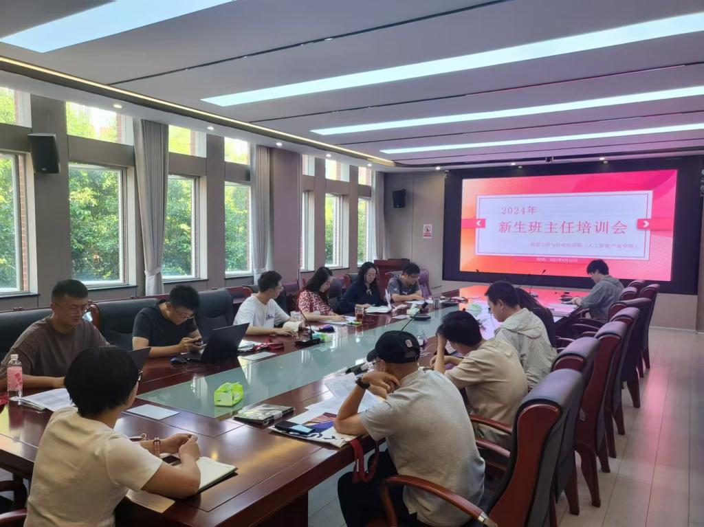 (产业学院)在信自212会议室召开2024级本科新生班主任培训会,学院党委副书记周鹭、2024级本科新生班主任及辅导员、教务办负责人、学生专项工作负责人参加会议。