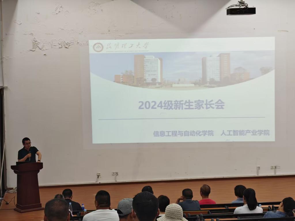 (人工智能产业学院)在信自100报告厅分两个批次召开2024级本科新生家长会。学院党委书记齐毅、学院院长王红斌、分管学生工作的负责人、各系主任、2024级新生班主任、辅导员及2024级新生家长共计500余人参加了家长会。