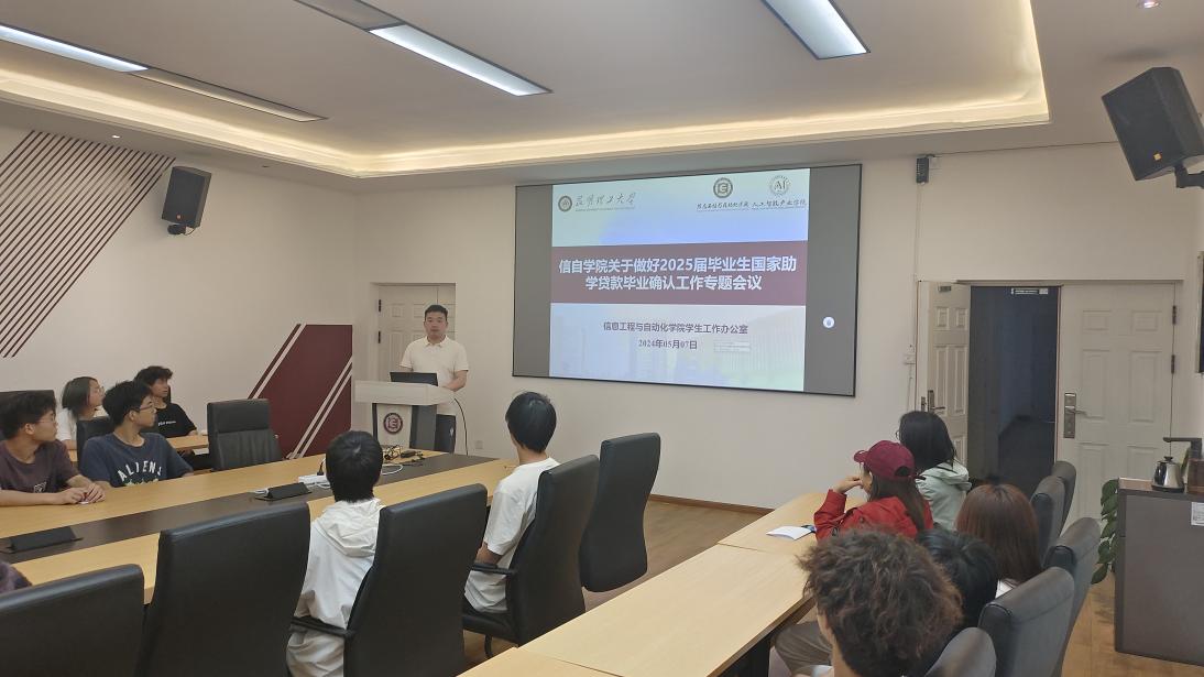 (产业学院)在信自楼237会议室召开5月资助联络员例会,开展资助政策专题宣讲及2025届毕业生助学贷款确认工作安排。