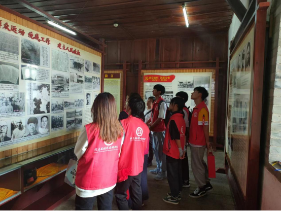 在石屏县县委宣传部办公室负责人奠俊保的带领下,实践团队在来到位于石屏一中企鹤楼的石屏县委党史教育基地。通过对党史教育基地各个展室的参观以及奠主任和指导老师的讲解,实践团队成员对于石屏的党史发展有了更为深刻的认识,以石屏党史的发展故事线映射到整个西南乃至全国的党史发展故事发展线,与所学知识相联系,梳理党史脉络。随后,实践团队来到石屏县委党史教育基地的最后一站宣誓室,在指导老师的带领下,实践团队成员在团旗下重温入团宣誓,增强团员意识。最后,实践团队成员针对石屏一中的学生进行党史问卷调查和访谈,深入了解石屏一中学生对于党史的了解程度和学习方式。