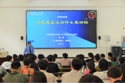 从理论上,为大家阐释了马克思主义理论的系统性及体系化,介绍了马克思主义“一大系统、二大发现、三大有机组成部分”的严整体系,揭示了马克思主义在与时俱进中表现出的理论性、科学性、革命性和实践性的特质。同时,向师生们展示了《共产党宣言》等经典著作,进一步呈现了严谨、科学的马克思主义理论体系。
