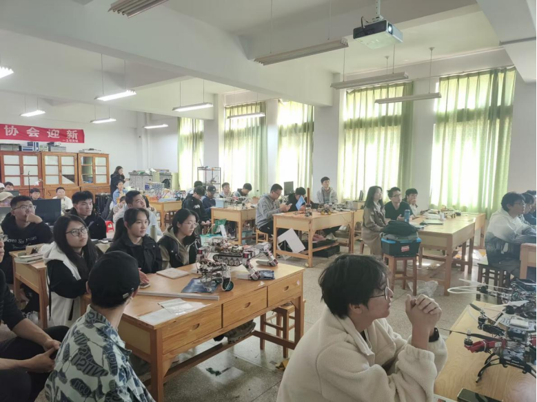 以促进学习为中心,提高大学生素质为目的;让来自各个学院专业,对电子科技具有兴趣爱好的同学相聚,大家相互学习、一起探讨、共同进步。本着竞争拼搏的精神,提高学生对电子电路的理解和应用能力,培养学生的实践能力和创新能力,促进学生科技素质的全面发展,科技协会于2023年11月25日在明理楼509顺利举办“新征程-新出发:大学生活之竞赛与项目分享会”活动。协会指导教师老师李大炎出席并指导本次活动。