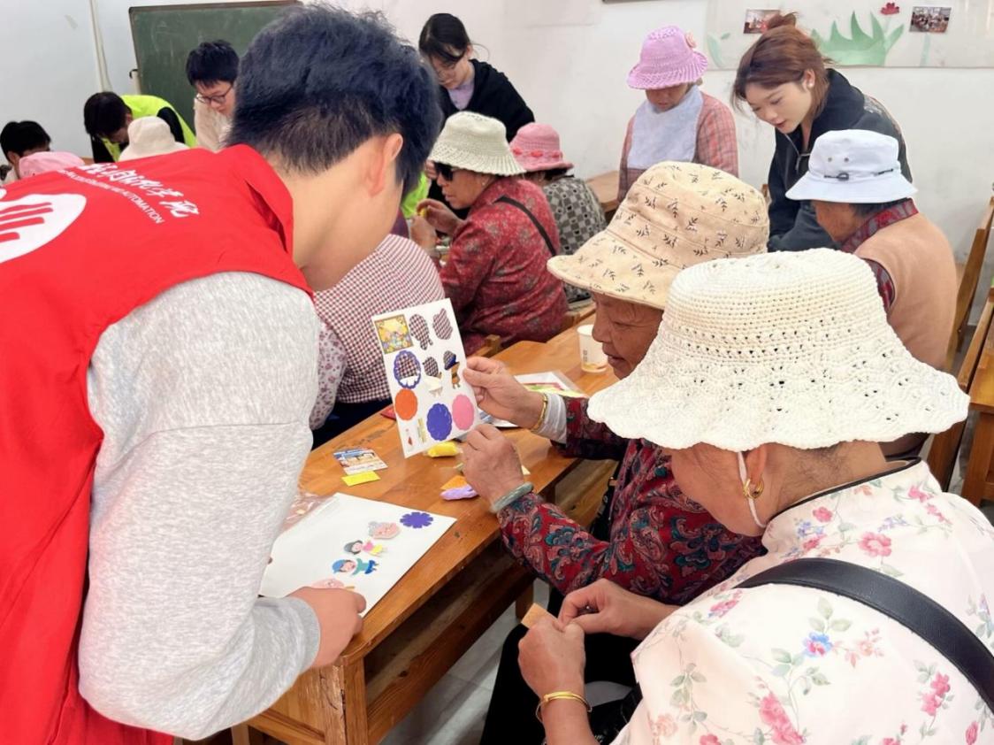 活动过程中,志愿者们首先向社区老人们演示了有助于保持身体健康的“八段锦”体操,耐心细致地讲解了每一段体操动作的要领以及注意事项。随后,志愿者们组织所有老人参与了以重阳节为主题的手工贴画制作,一对一地为老人们提供指导,协助他们完成精美作品的创作。在完成过程中,志愿者们耐心倾听着他们的故事,在聊天中传递着家的温暖与陪伴,拉近了与老人们的距离。