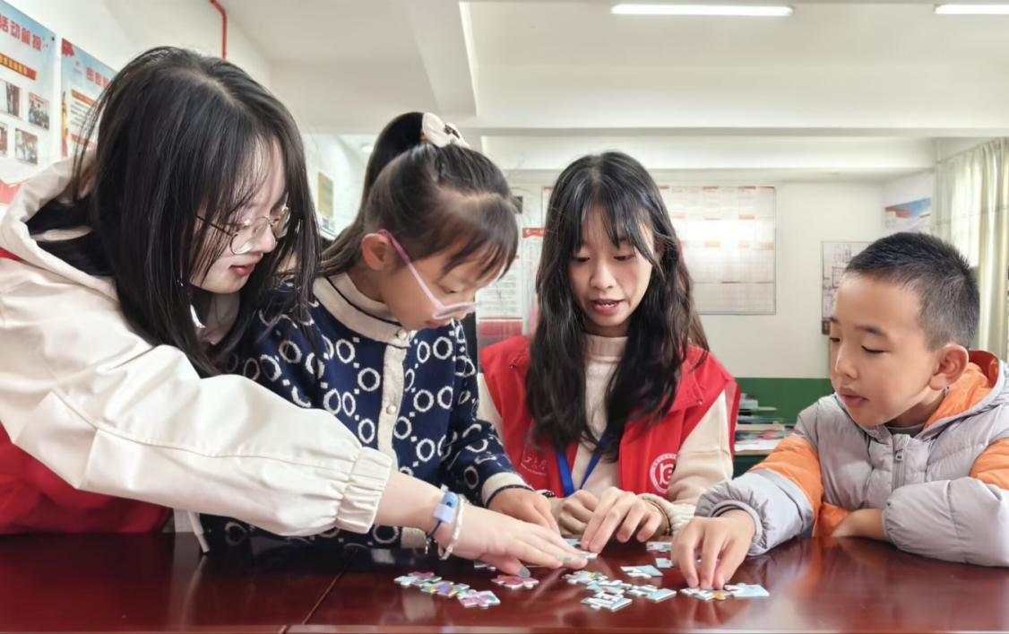 活动开始,社区小朋友们在志愿者的带领下分成多个小组,同组的儿童共同合作完成由AI生成的动画拼图,既培养了他们的团队合作能力和动手能力,也让他们对人工智能有了进一步了解;随后,志愿者们通过相互提问猜谜语的方式促使孩子们积极思考,踊跃发言;最后,小朋友们在白纸上写下了对彼此地赞美,并互相交换纸条,让他们懂得了情感交流的美好。