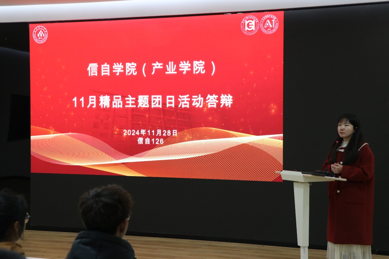 (人工智能产业学院)在信自楼126会议室开展11月精品主题团日活动答辩,学院团委书记万松出席会议,2024级全体团支书参加会议。