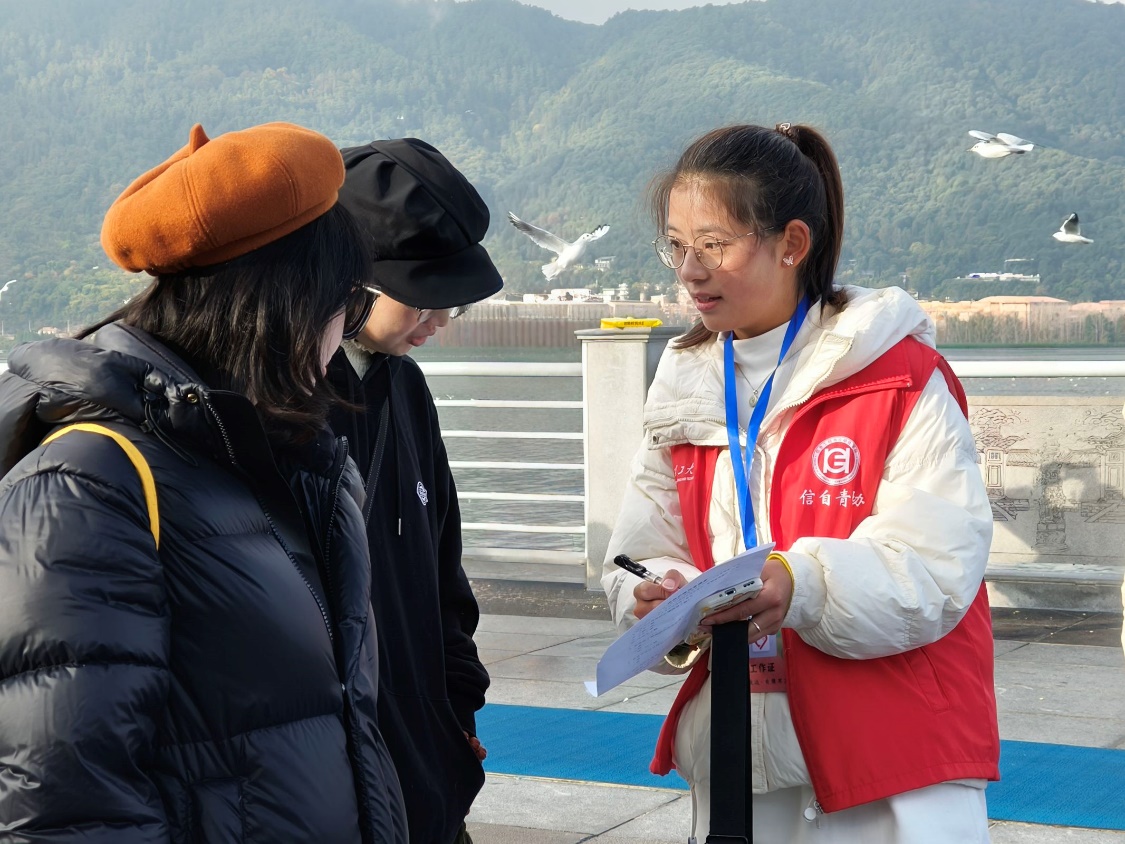 在活动过程中,志愿者们身穿红马甲,分组行动。一组志愿者负责开展爱鸥护鸥问卷调查,向游客普及护鸥相关知识,增强市民及游客对红嘴鸥的认识,提升爱鸥护鸥的意识,并为游客和红嘴鸥拍照留念,展现人与自然和谐共处的画面。另一组志愿者负责维护观鸥区域的卫生环境,清理大坝垃圾,并向市民倡导文明观鸥,为海鸥营造一个干净整洁的栖息环境。