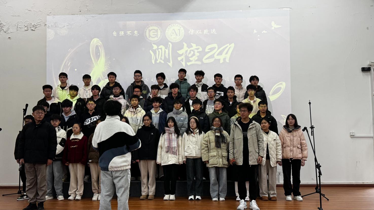 本次决赛共有8支2024级新生班级队伍入围,每支参赛队需演唱两首歌曲,其中校歌《从这里出发》为必唱曲目。各队伍按照抽签顺序依次出场,同学们在台上用整齐嘹亮的歌声抒发情怀,借舞台演绎时代,发出青春之音,绽放青春活力。整场比赛高潮选起,赢得了观众的阵阵掌声。最终,测控241班、计科243班凭借其出色的表现荣获本次合唱比赛的一等奖,人工智能242班、电子241班、人工智能241班荣获二等奖,数字经济241班、自动化243班、通卓242班荣获三等奖。