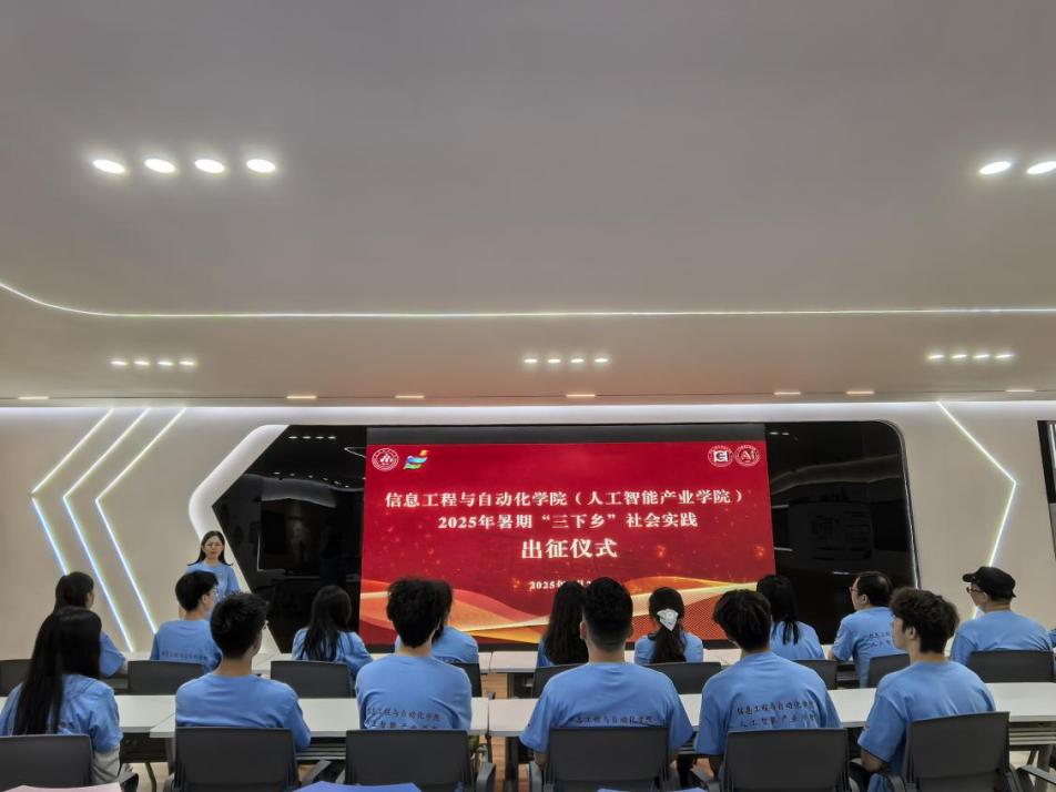(产业学院)2025年大学生暑期“三下乡”社会实践活动出征仪式在信自126会议室举行,学院党委副书记郑婷婷老师为实践团队寄语,希望同学们一要将专业所学转化为服务三农的实效;二要在实践中淬炼品格、锤炼意志;三要严守纪律、确保安全。在出征仪式上,实践团队成员们纷纷表示将把“三下乡”作为书写青春答卷的火热课堂,把实践成果沉淀为成长底色,在广袤乡土上书写属于信自学子的奋进篇章。