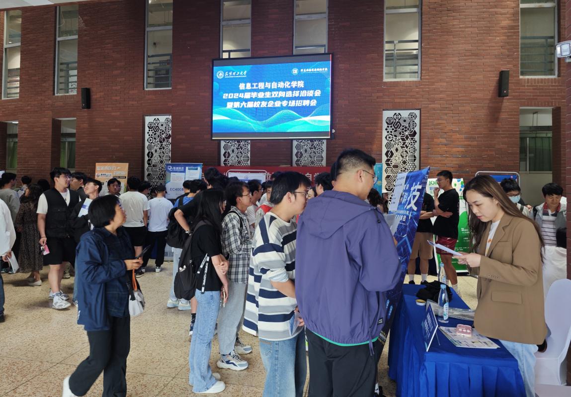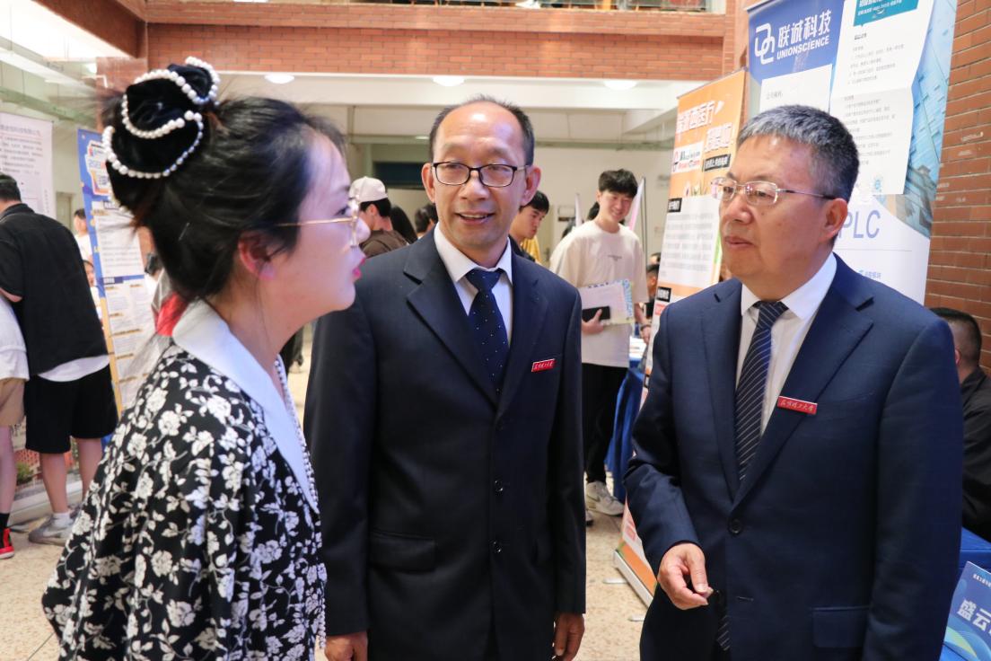 在信自楼一楼大厅举办了2024届毕业生双向选择洽谈会暨第六届校友企业专场招聘会。学校党委副书记蔡金红、学院党委书记齐毅来到招聘会现场,与用人单位对接交流,并与毕业生亲切交谈,鼓励同学们积极求职。